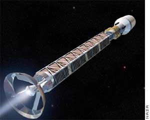 Researchers at NASA's Marshall Space Flight Center developed the sketch (below) of a hypothetical antimatter rocket of the future.