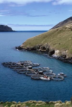 This commercial salmon fishing operation is in a deepwater cove off Lucas Bay, Alaska. Most of the world's salmon farming is done in the cold northern Pacific and Atlantic waters off North America.