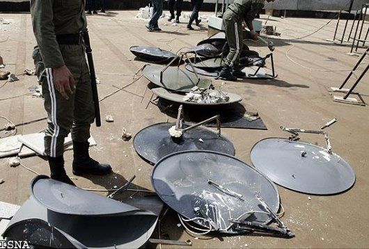 Recycling unwanted satellite dishes is still easier than destroying them, as these Iranian soldiers are trying to do.