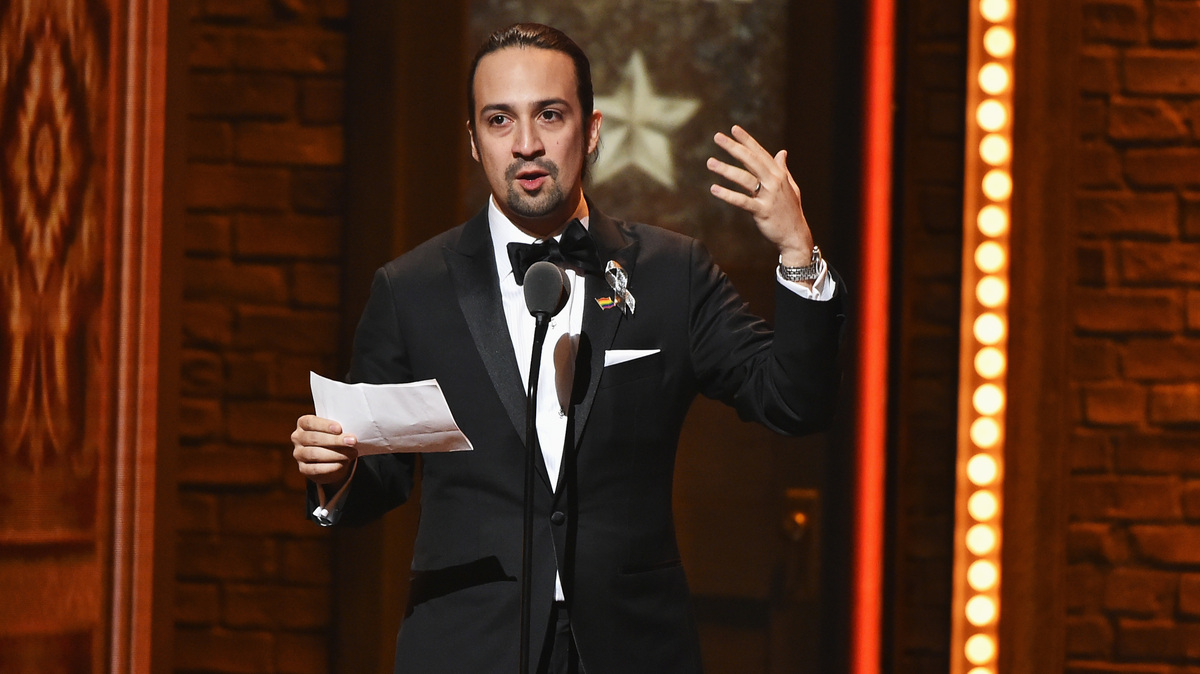 Lin-Manuel Miranda (shown here accepting an award at the 70th Annual Tony Awards) is featured in this week's show.