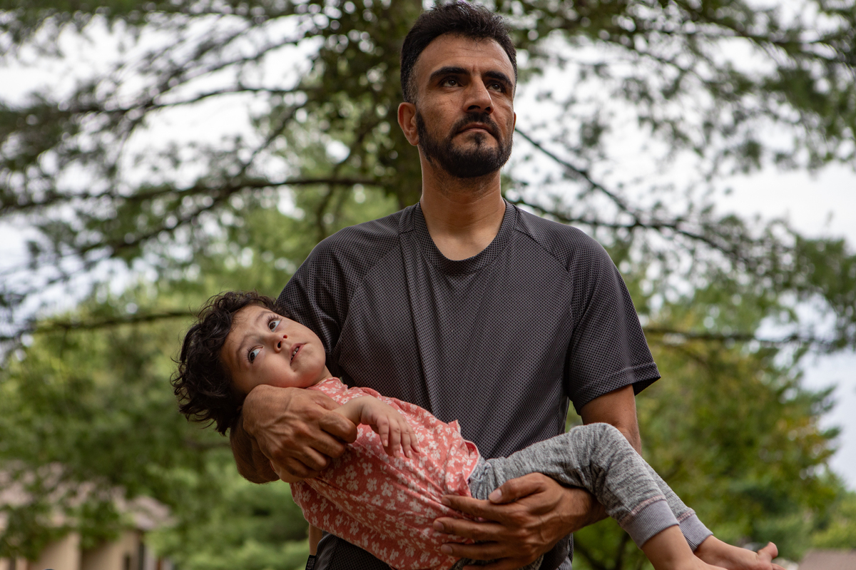Shafiullah Amani with one of his his two daughters in Alexandria, VA on August 3, 2023.