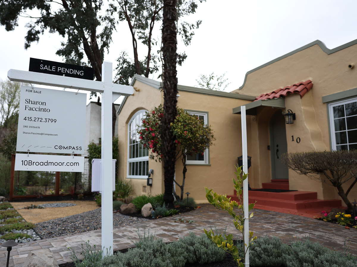 A for sale sign is posted in front of a home on March 22, 2023 in San Anselmo, California.(Photo by Justin Sullivan/Getty Images) Justin Sullivan/Getty Images hide caption