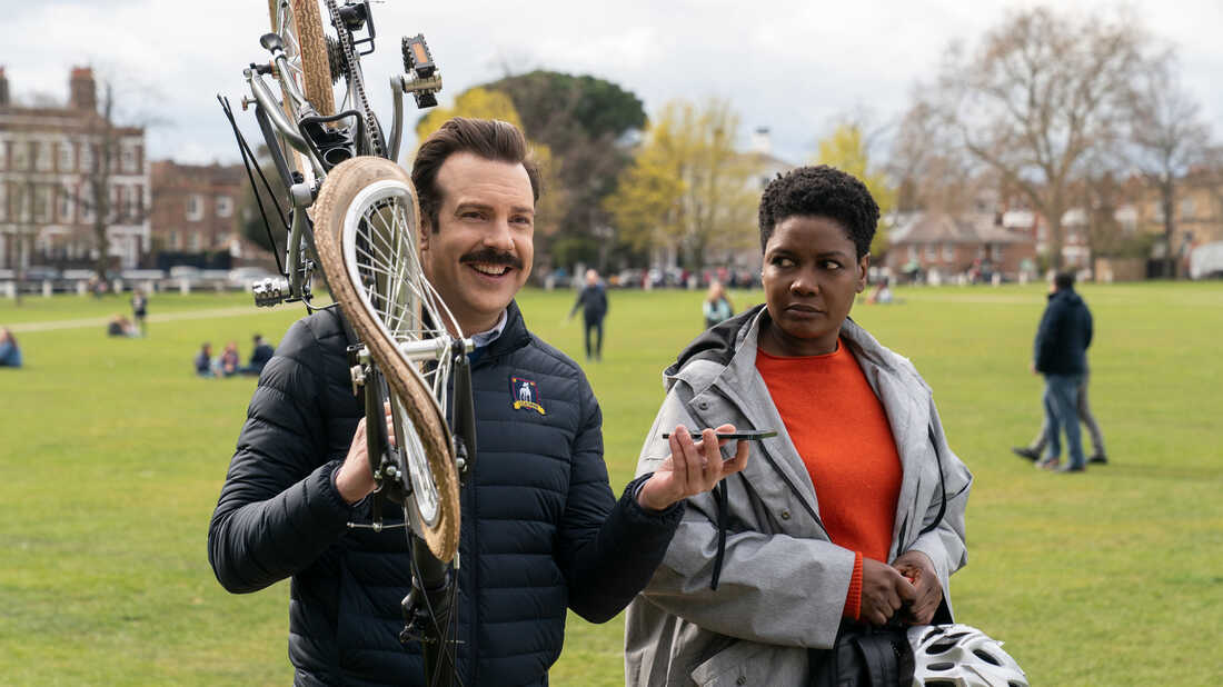 Jason Sudeikis and Sarah Niles in season 2 of Ted Lasso.