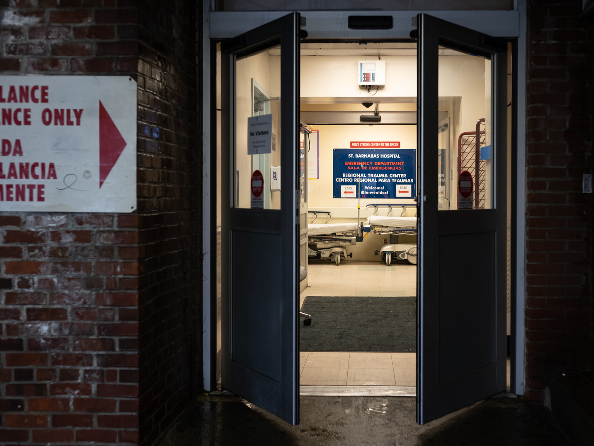 Doors lead into the Emergency Department at St. Barnabas Hospital on March 23, 2020 in New York City. Emergency rooms saw some of the most painful scenes of the pandemic and are still grappling with the consequences. Misha Friedman/Getty Images hide caption