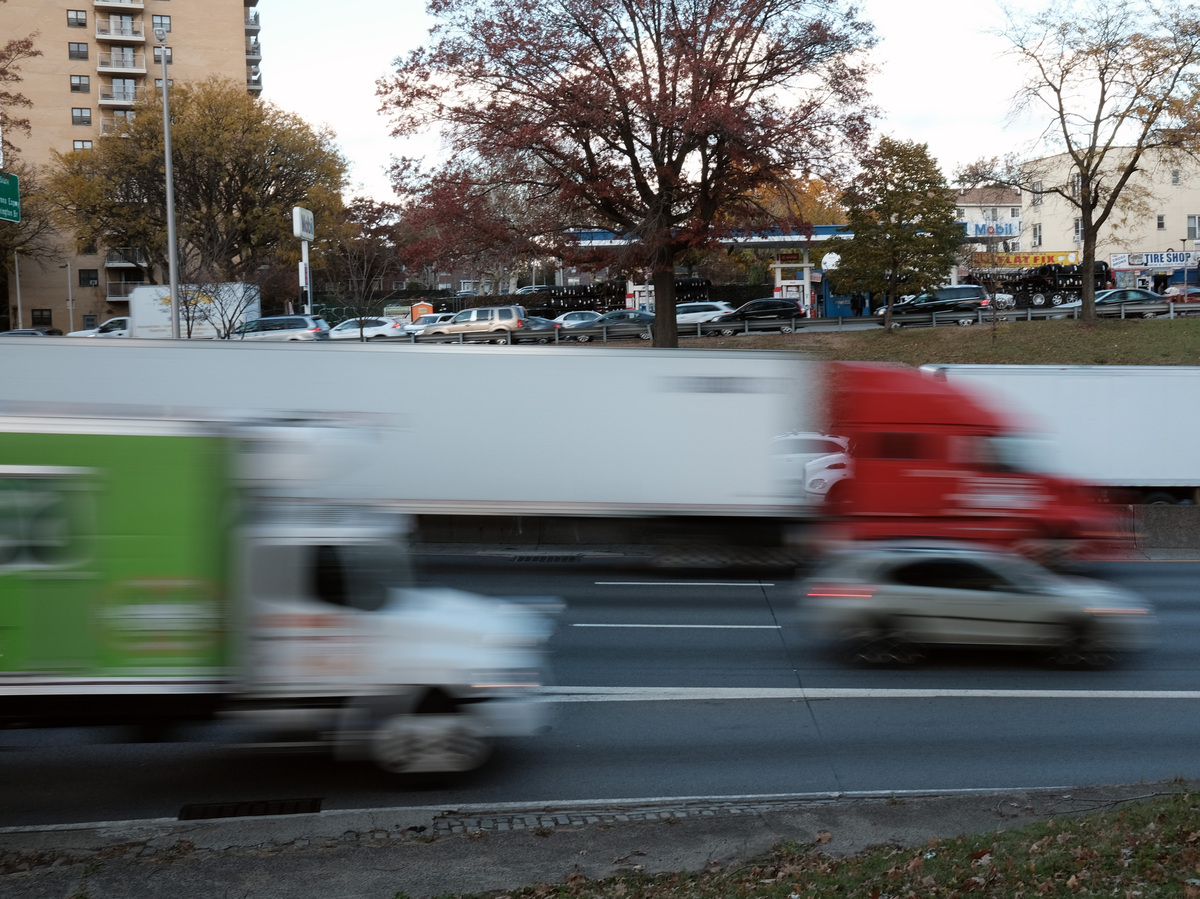 Cars and trucks move along the Cross Bronx Expressway, a notorious stretch of highway in New York City that is often choked with traffic and contributes to noise and air pollution. November 16, 2021.