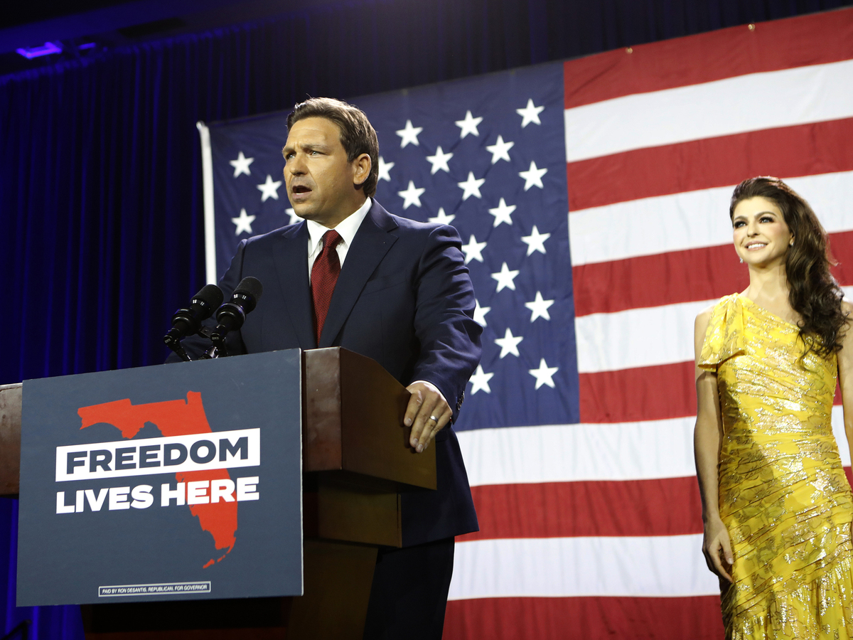 Florida Gov. Ron DeSantis gives a victory speech after winning re-election in 2022.