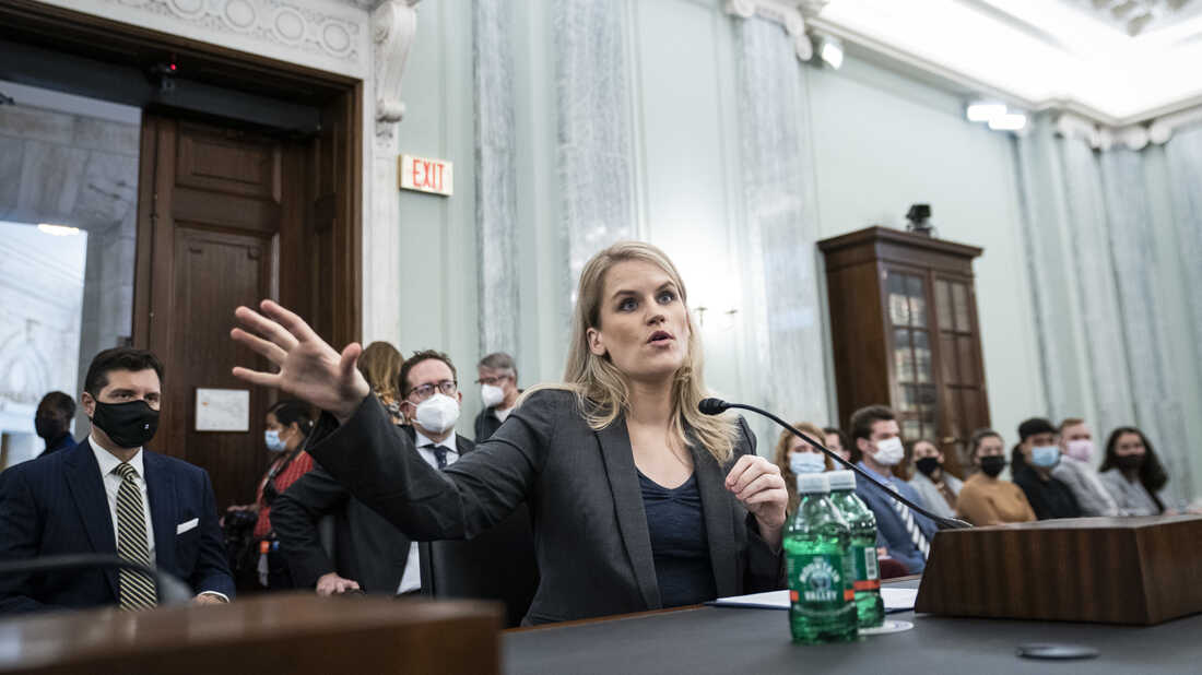 Former Facebook employee and whistleblower Frances Haugen testifies during a Senate Committee on Commerce, Science, and Transportation hearing on Capitol Hill, October 05, 2021 in Washington, DC. Jabin Botsford/Getty Images hide caption