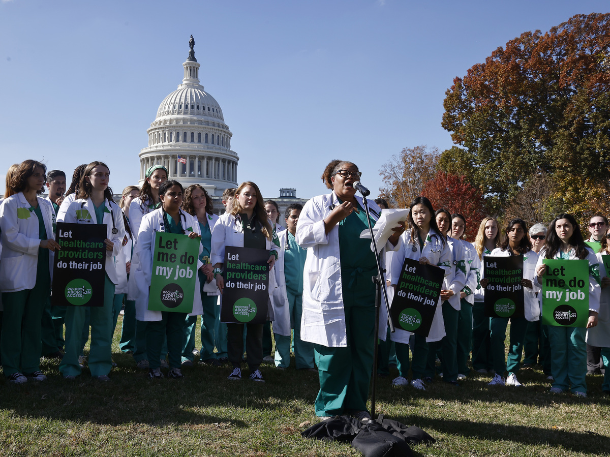 Doctors from across the U.S. demonstrate against abortion restrictions outside the U.S. Capitol building in Washington this month.