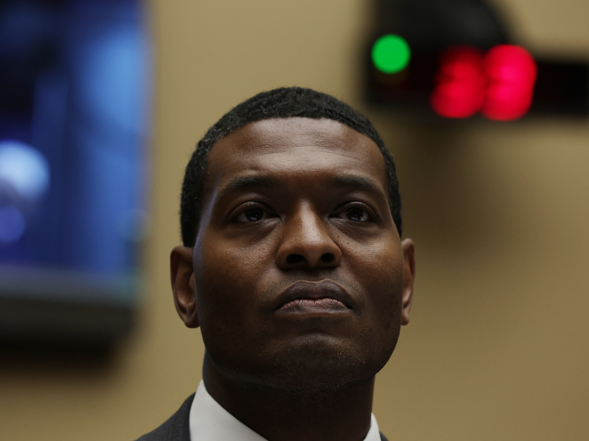 Environmental Protection Agency Administrator Michael Regan at a congressional hearing last year. Regan says that Norfolk Southern will pay for the cleanup of the derailment disaster in Ohio. Alex Wong/Getty Images hide caption