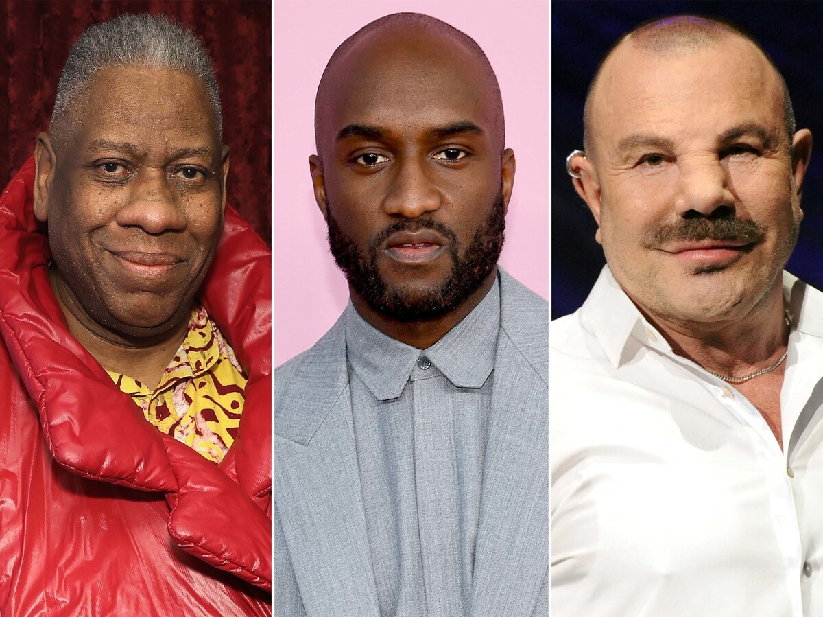 (L-R) Andre Leon Talley on March 29, 2017 in New York City; Virgil Abloh at the Brooklyn Museum of Art on June 03, 2019 in New York City; French fashion designer Thierry Mugler on October 10, 2014 in Friedrichstadt-Palace theater in Berlin.