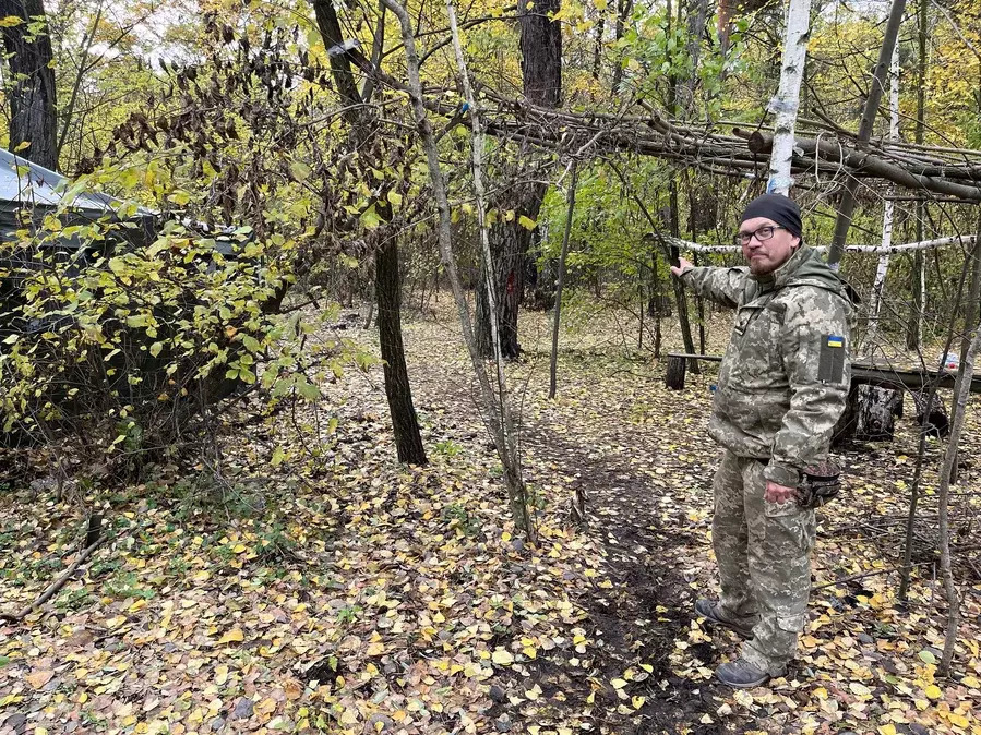 Maj. Hryhoriy Havrysh tours his bunks at a military camp outside Dnipro on Oct. 24.