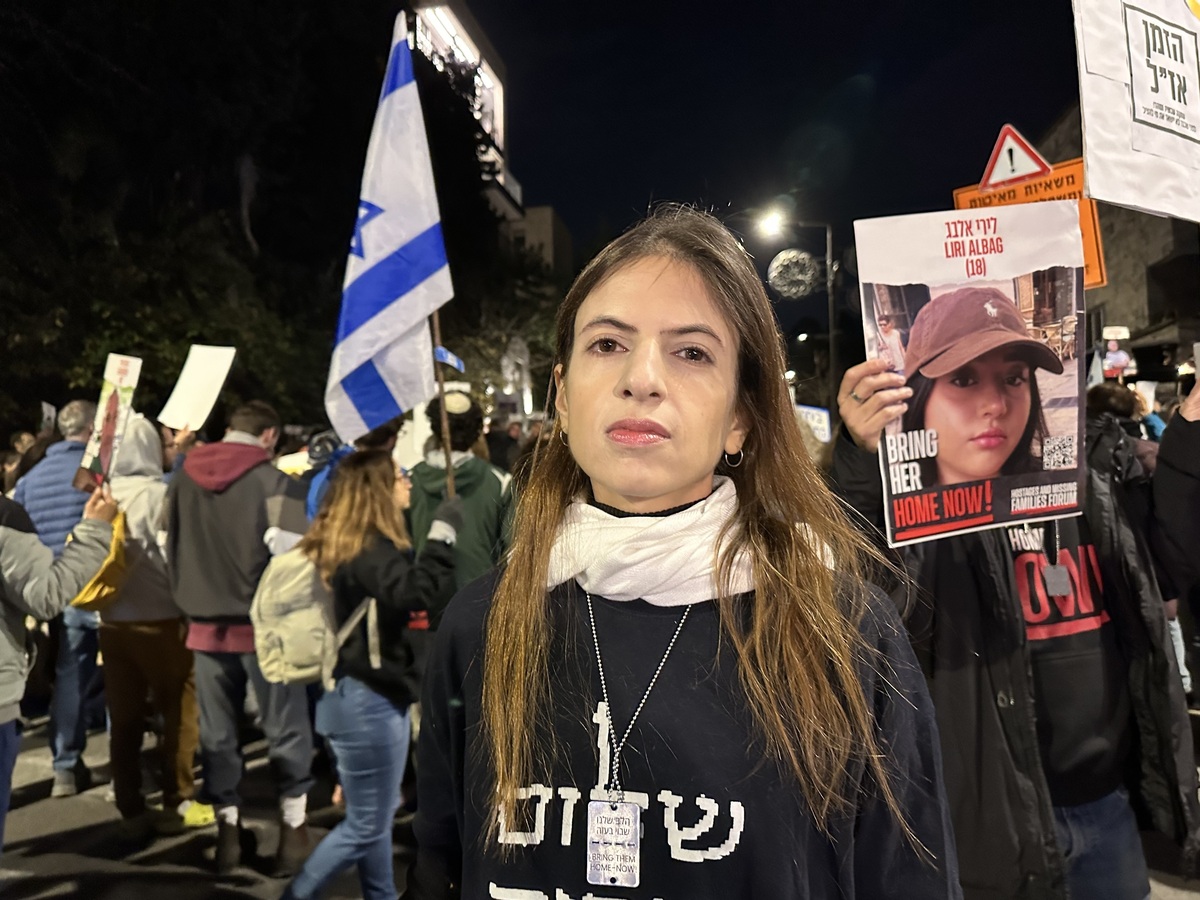 Nava Rozolyo, a 27-year-old Israeli who came to support the relatives of Israeli hostages, as they protest in front of Israeli Prime Minister Benjamin Netanyahu's house this week. Discontent over the war and the Israeli government's failure to secure the release of the hostages is growing.