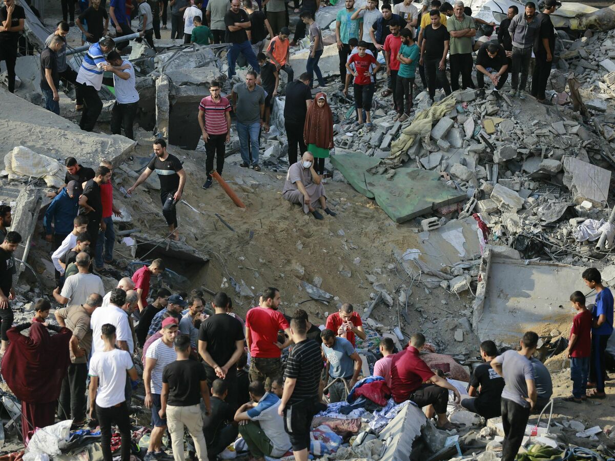 Palestinians check the destruction in the aftermath of an Israeli strike the previous night in the Jabalia camp for Palestinian refugees in the Gaza Strip, on November 1, 2023, amid ongoing battles between Israel and the Palestinian Hamas movement.