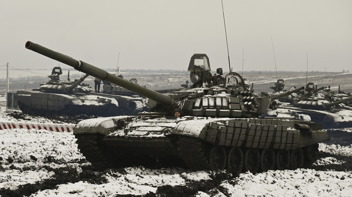 Russian tanks take part in training drills in southern Russia this week as Russia rejects Western complaints about its troop buildup near Ukraine.