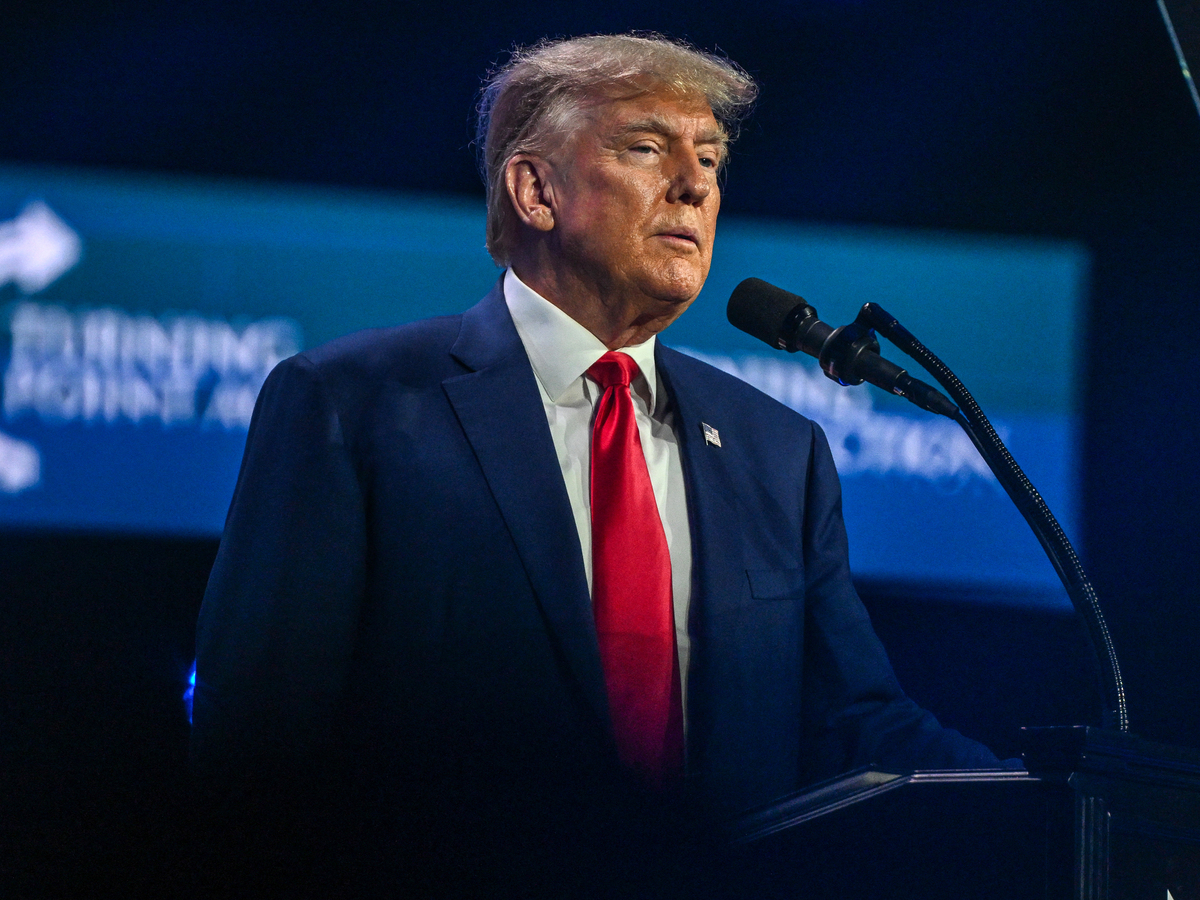 Former US President Donald Trump at the Turning Point Action USA conference in West Palm Beach, Florida, on Saturday. He says he received a letter shortly afterward naming him as a target in the investigation by Special Counsel Jack Smith into the January 6th attack at the U.S. Capitol.