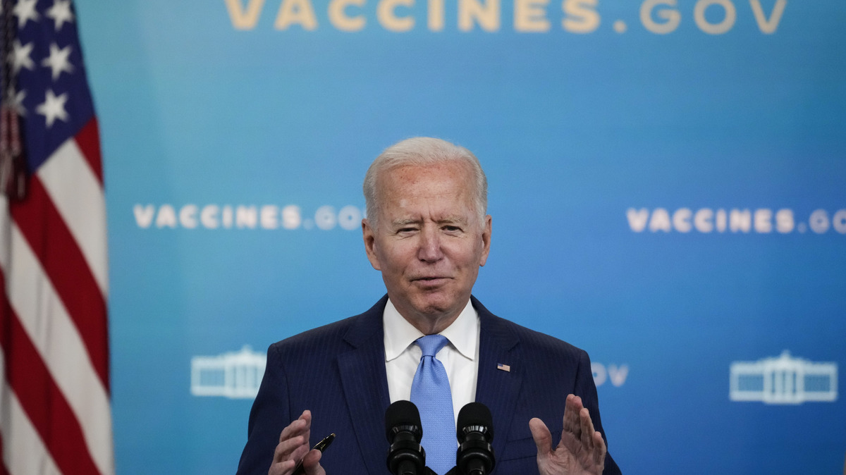 U.S. President Joe Biden speaks about COVID-19 vaccines in the South Court Auditorium at the White House complex on August 23, 2021 in Washington, DC. Drew Angerer/Getty Images hide caption