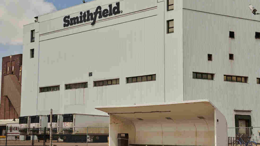 A bus stop stands empty in front of the closed Smithfield Foods Inc. plant in Sioux Falls, South Dakota, U.S., on Wednesday, April 15. Dan Brouillette/Bloomberg via Getty Images hide caption