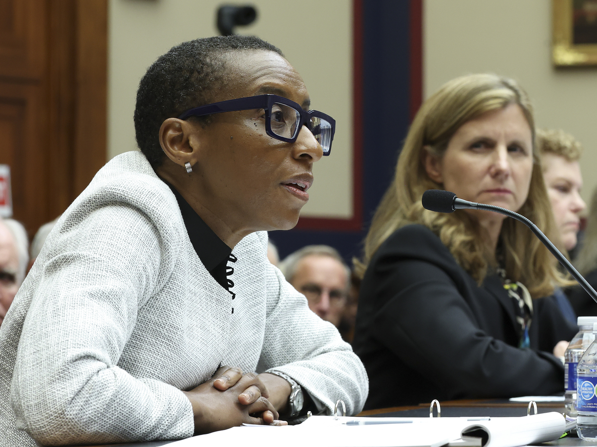 Dr. Claudine Gay, President of Harvard University, and Liz Magill, President of University of Pennsylvania, testify before a Congressional Committee about antisemitism on campus earlier this month. Kevin Dietsch/Getty Images hide caption