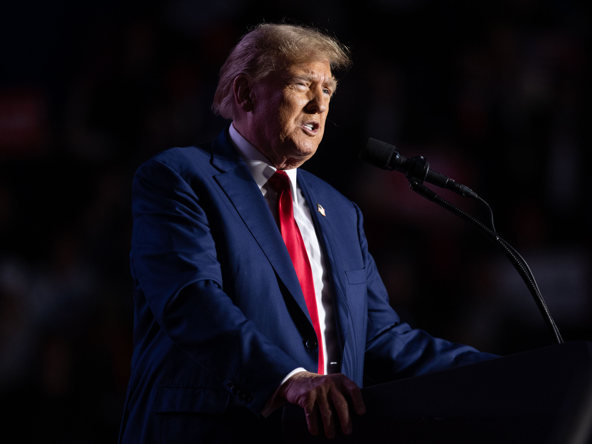 Republican presidential candidate, former President Donald Trump speaks during a campaign event in Durham, New Hampshire. Scott Eisen/Getty Images hide caption