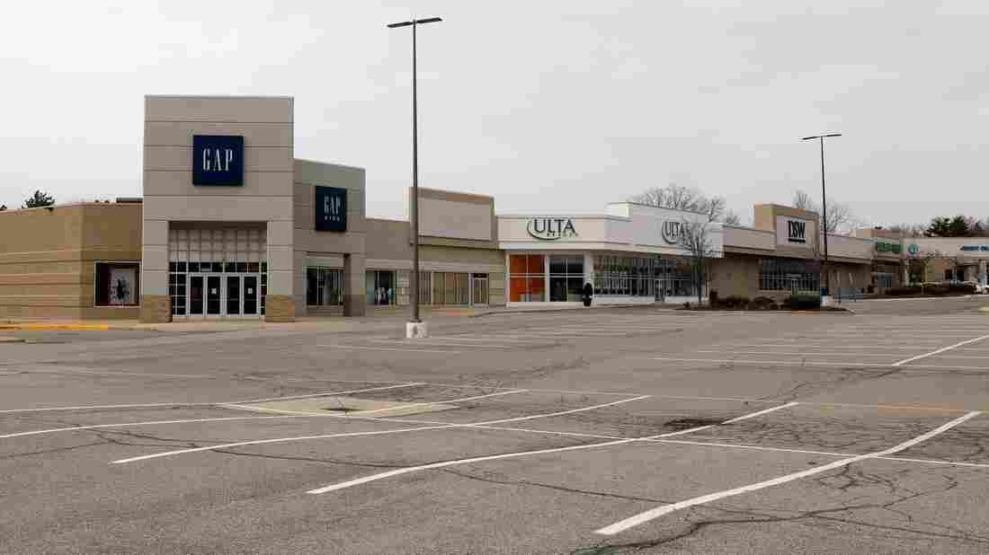 A shopping center with closed retail stores due to the COVID-19 outbreak in Farmington Hills, Michigan, on March 26, 2020. Jeff Kowalsky/AFP via Getty Images hide caption