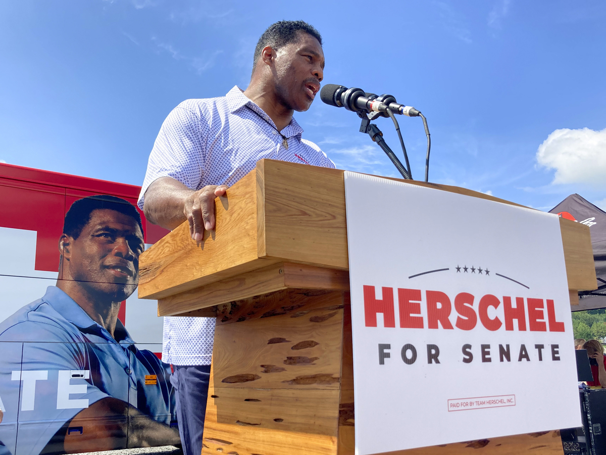 FILE - Republican Senate candidate Herschel Walker campaigns Sept. 7, 2021, in Emerson, Ga. (AP Photos/Bill Barrow, File) Bill Barrow/AP hide caption