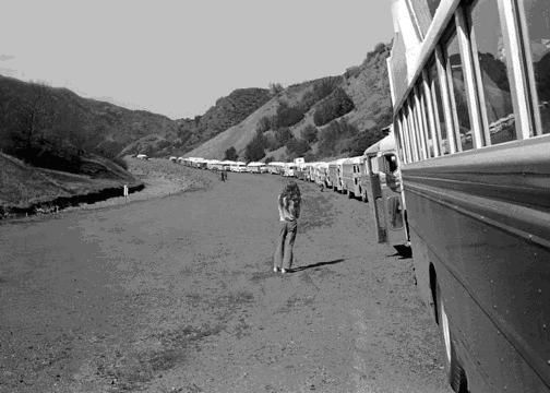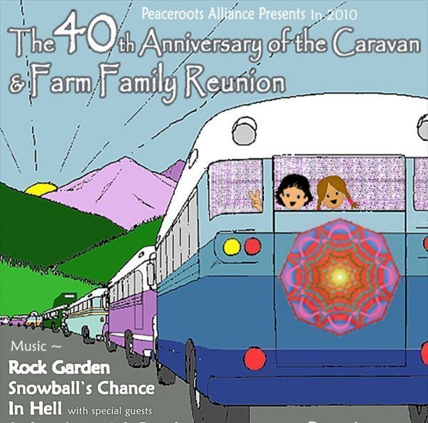 That memorable caravan, as seen in this photograph (© Book Publishing Company), was also the basis for the poster promoting the gathering of former Farm residents in Santa Rosa on Saturday. It’s natural that such an event would happen here, Tepper adds, since the North Bay was once home to so many of the founding Farmers.