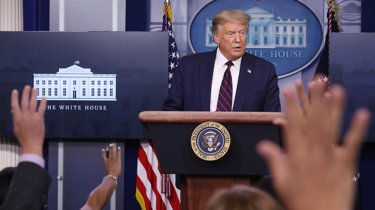 President Trump speaks to reporters in the Brady Press Briefing Room at the White House on July 21.