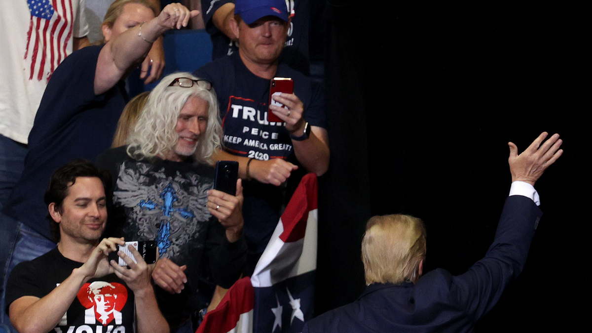 The President waves goodbye to supporters at a rally in Tulsa. Win McNamee/Getty Images hide caption
