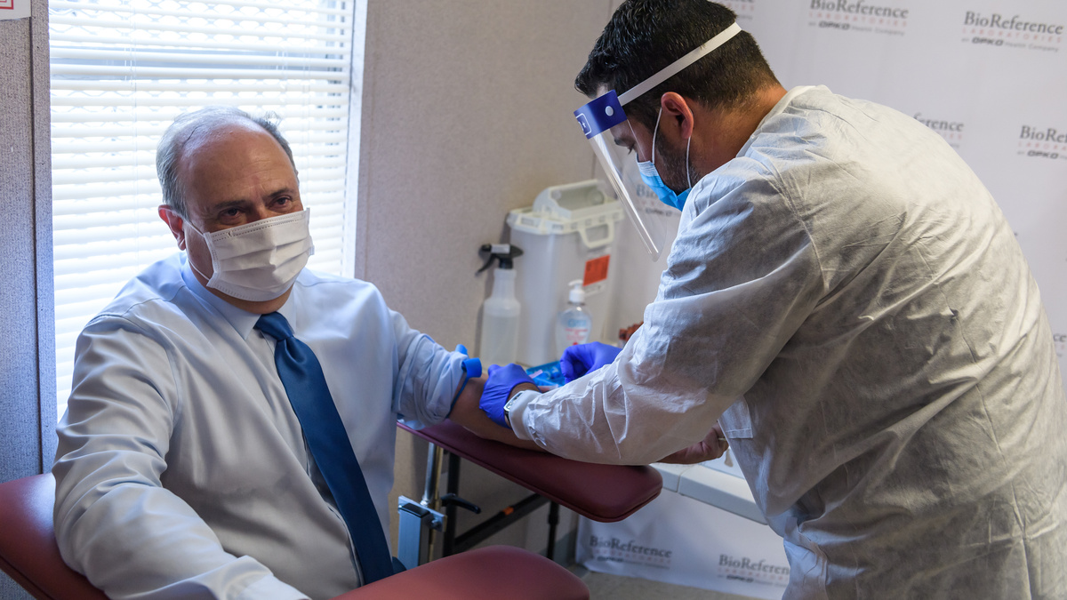 DORAL, FL - JUNE 18: Mayor of Doral Juan Carlos Bermudez gets tested for the coronavirus during an antibody