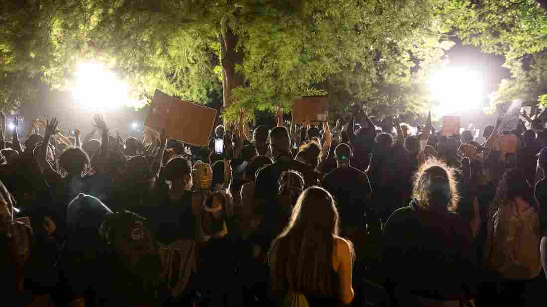 Demonstrators face off with the police in front of the White House as they protest against the death of