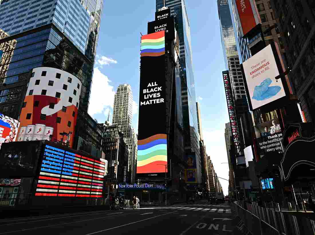 An "All Black lives matter" sign is pictured on a billboard at Times Square