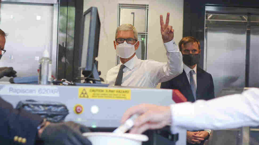 Apple CEO Tim Cook arrives at U.S. District Court in Oakland, Calif., on Friday.