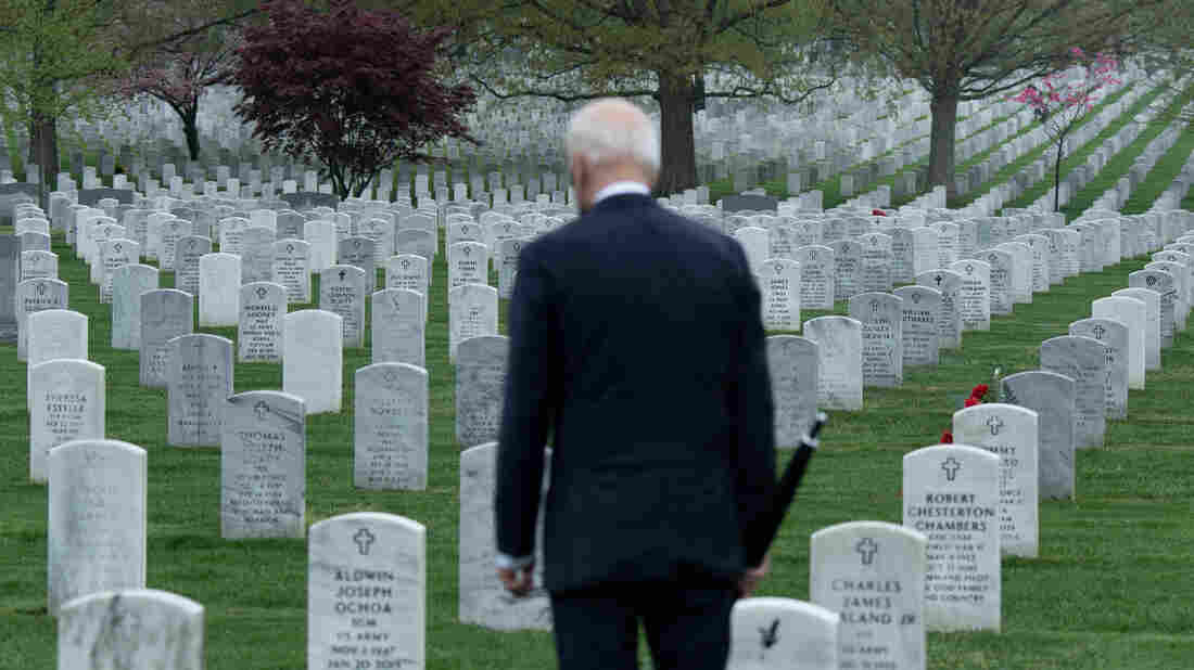 President Biden walks through Arlington National Cemetery to honor fallen veterans of the Afghan