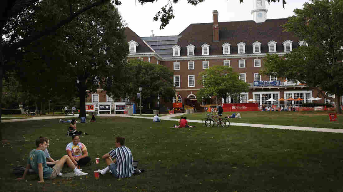 Students chat on a lawn last fall at the University of Illinois at Urbana-Champaign.