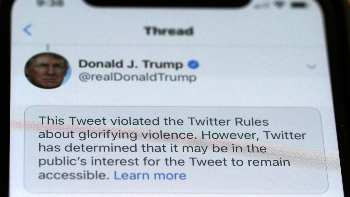 In this photo illustration a notification from Twitter appears on tweet by President Trump that the social media platform
