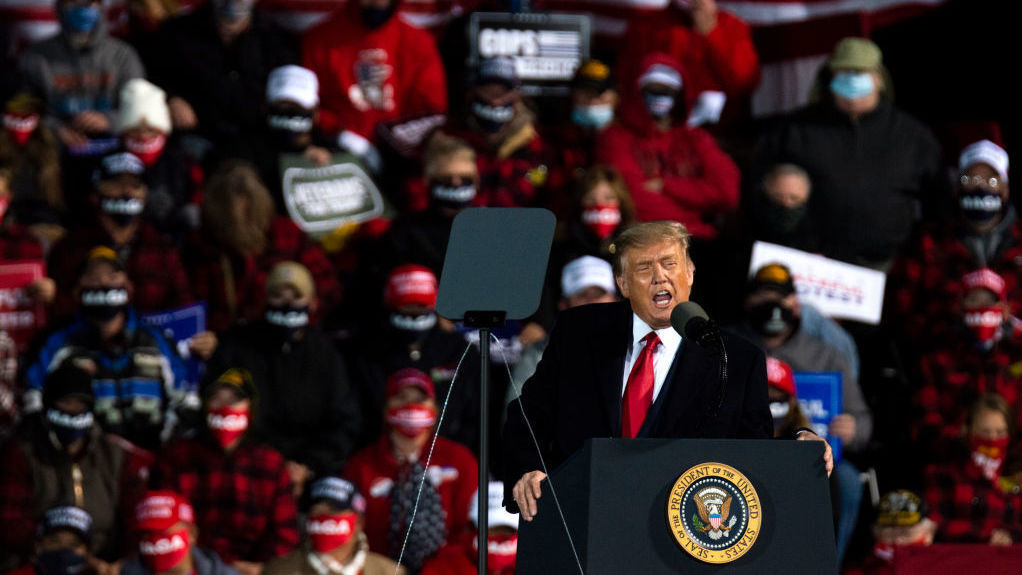 President Trump speaks during a campaign rally at the Duluth International Airport on Wednesday in Duluth, Minn. Trump announced