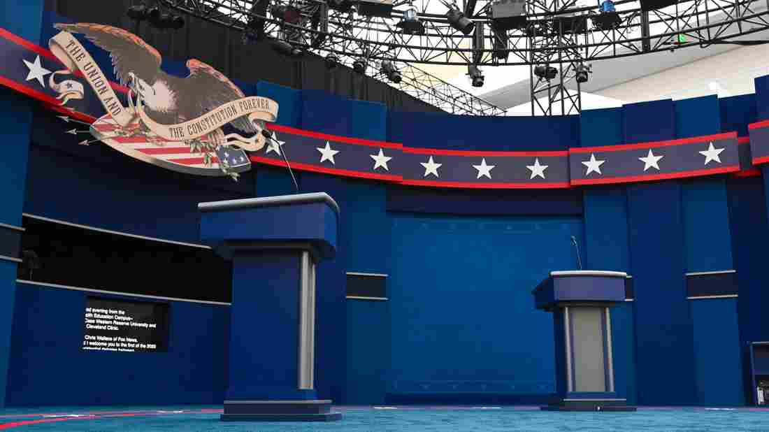 The stage of the first Presidential debate is seen on September 28 in Cleveland. Eric Baradat/AFP via Getty