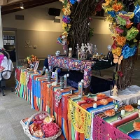 Volunteers gather at the Monte Rio Community Center to set up the ofrenda for the Annual Dia de Muertos celebration.