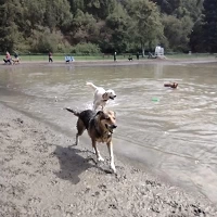 Puppies enjoy the annual Water Bark at Spring Lake Regional Park in Santa Rosa.