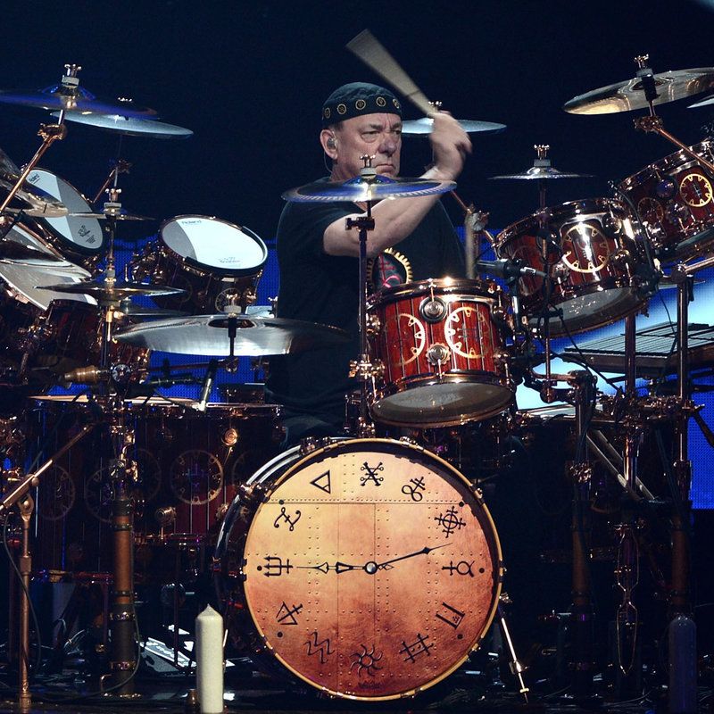 (Photo: Rush's Neil Peart performs at the Rock And Roll Hall Of Fame Induction Ceremony in 2013 - Kevin Winter/Getty Images/via NPR)