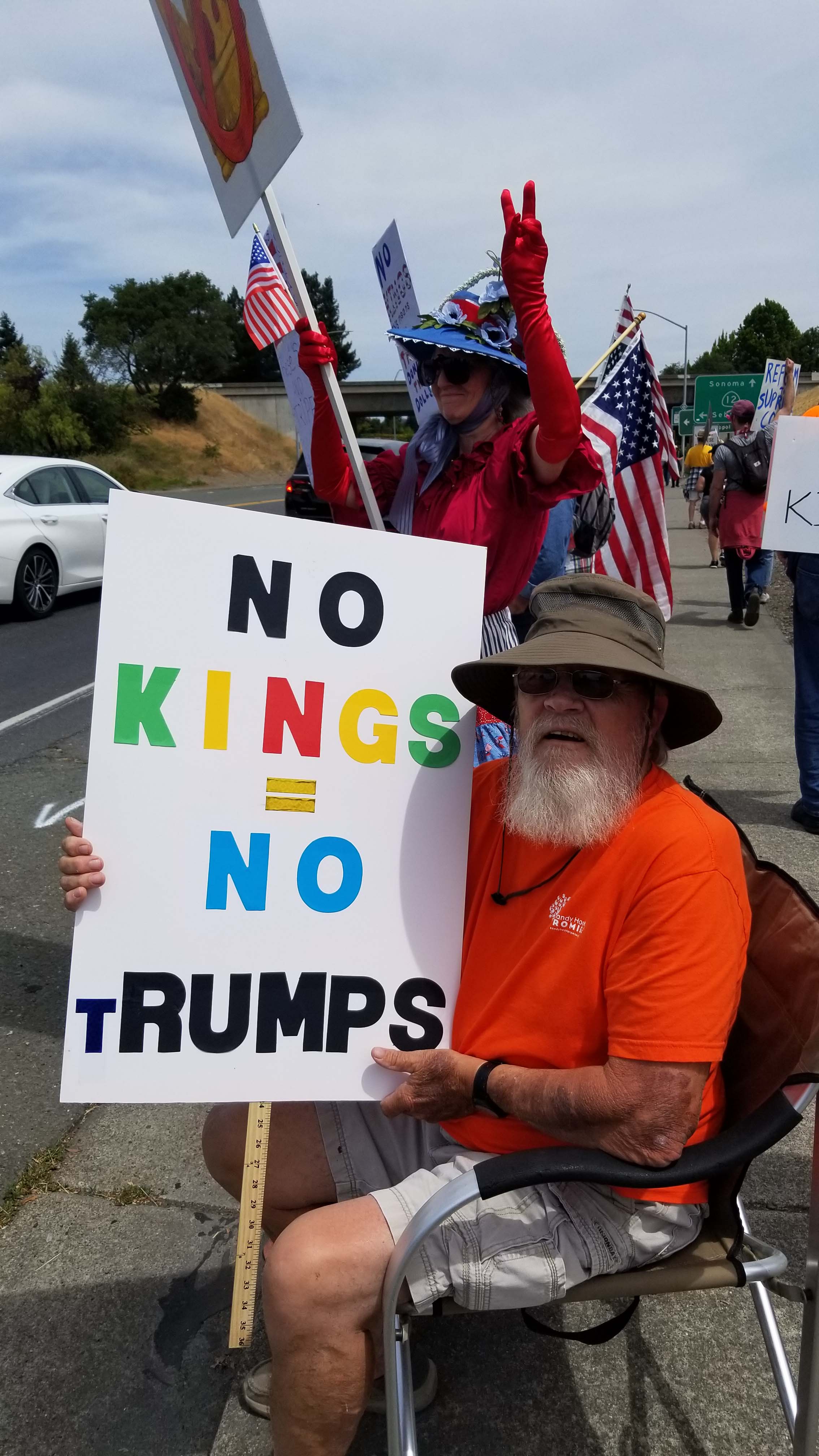 KRCB's Greta Mart covered the Petaluma "No Kings" protest;. here's what Petaluma native Eileen Solario had to say when asked what was on her homemade sign:
