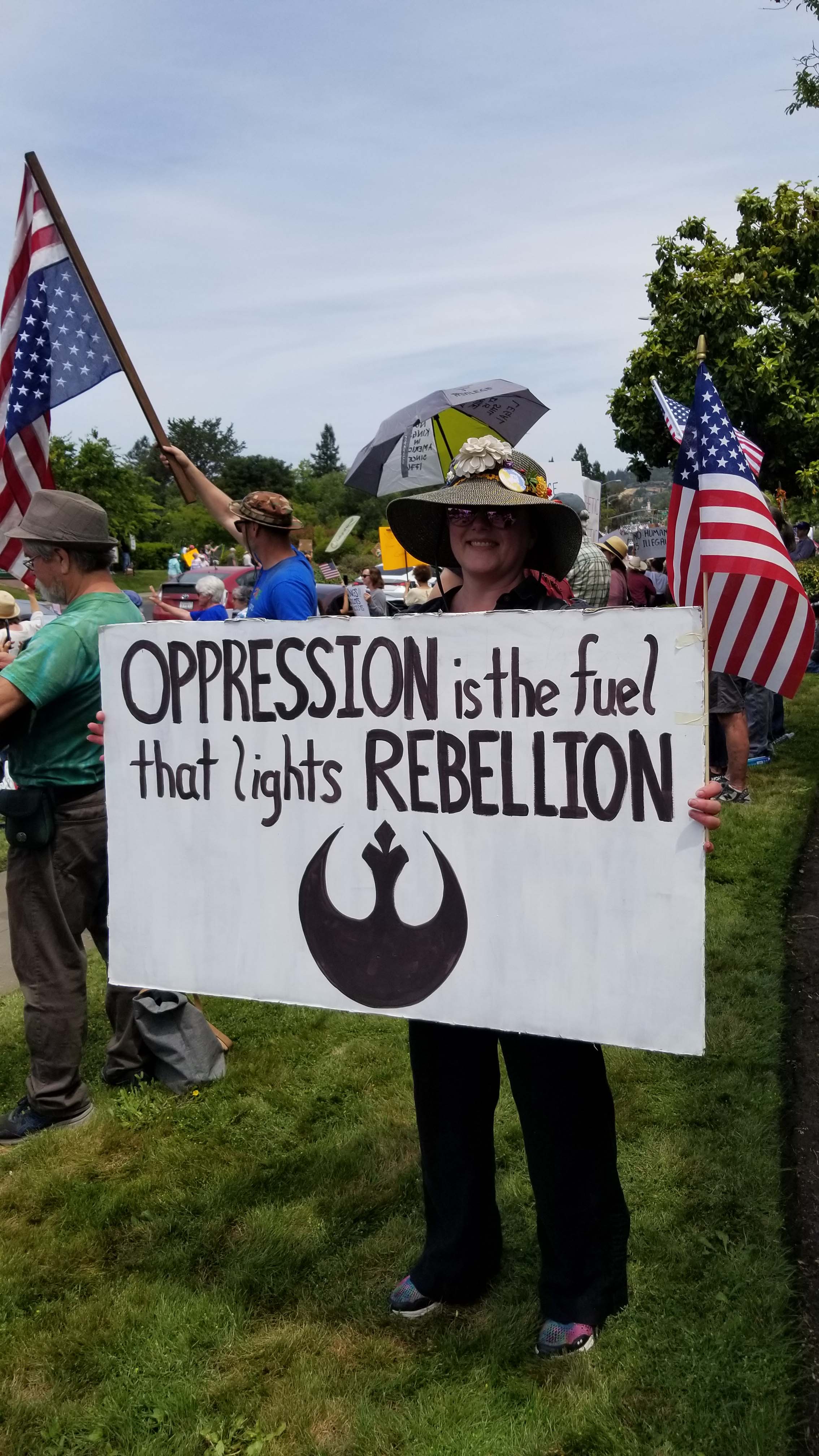 People used all kinds of inspiration for protest signs, like a Star Wars-themed billboard made by Christie from Geyserville.