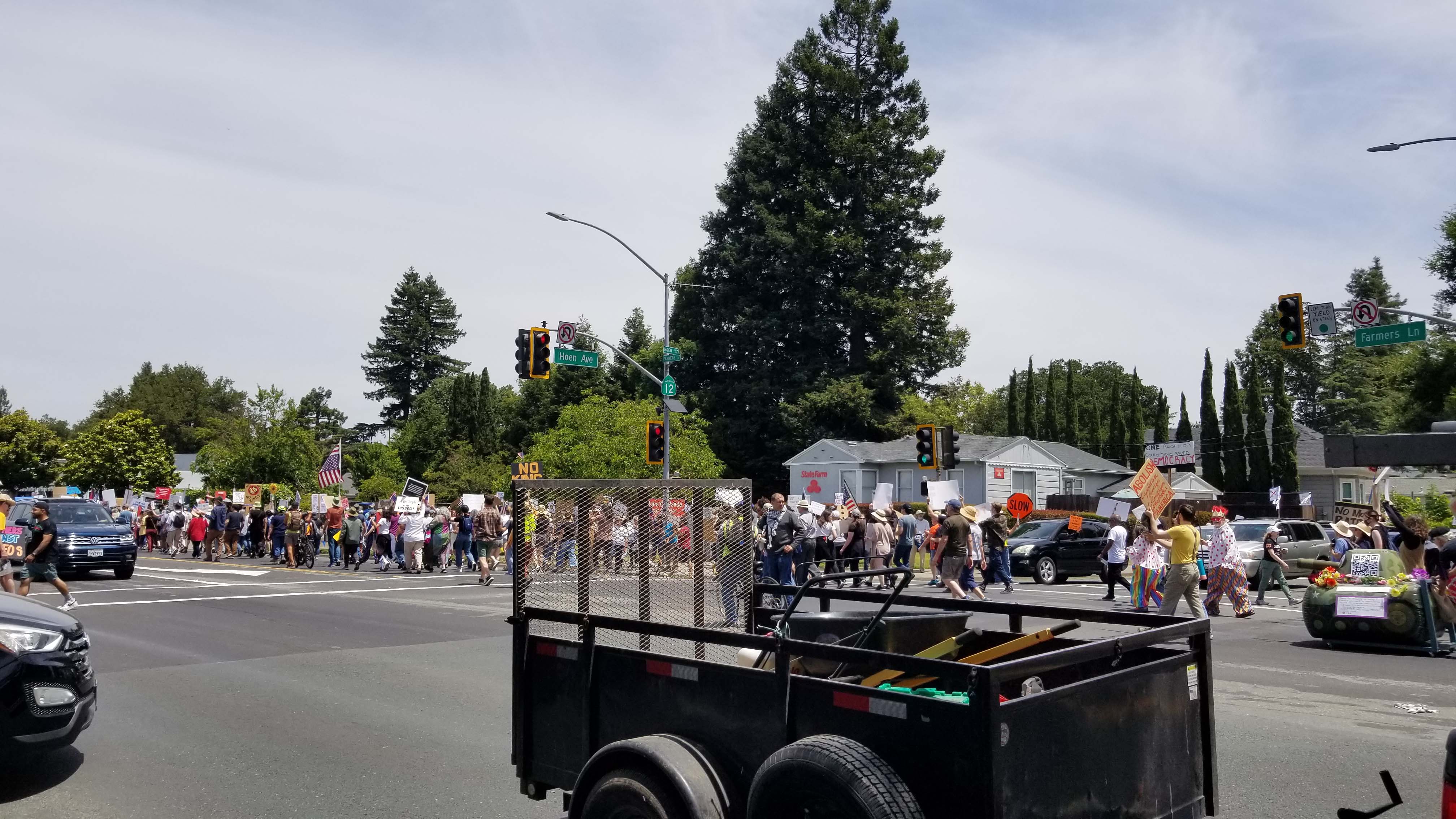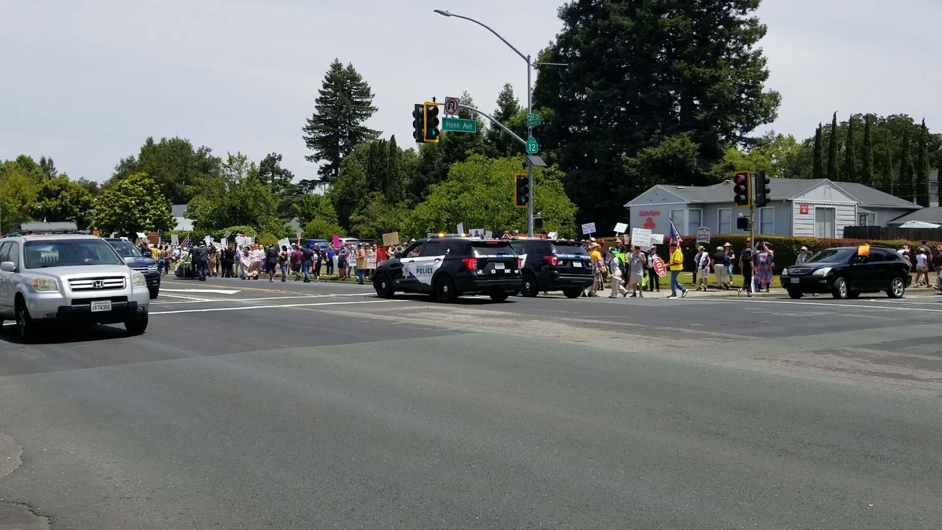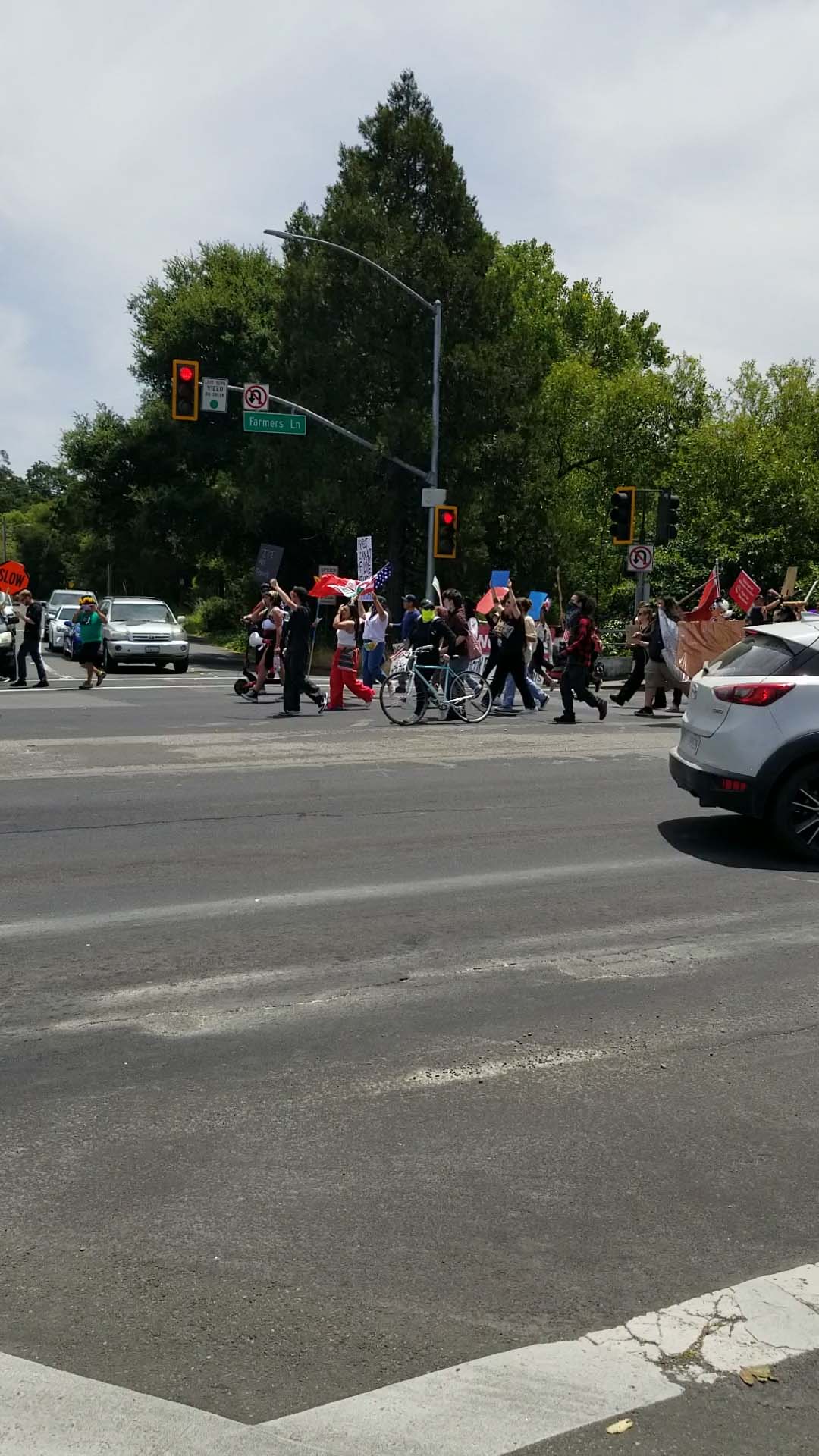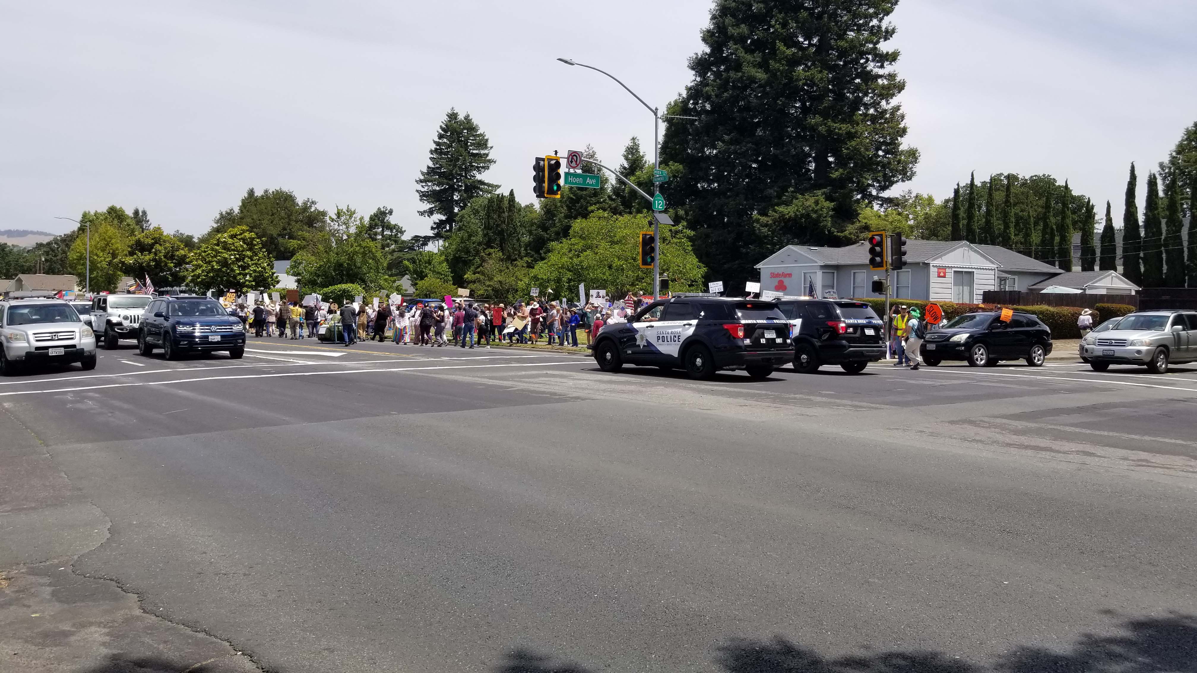 The protestors marched from the north end of Farmers Lane to Hoen Avenue and then turned around and took up the northbound lanes to march back. Crowds began to disperse around 1 PM, with some breaking off to march down Sonoma Avenue towards downtown.