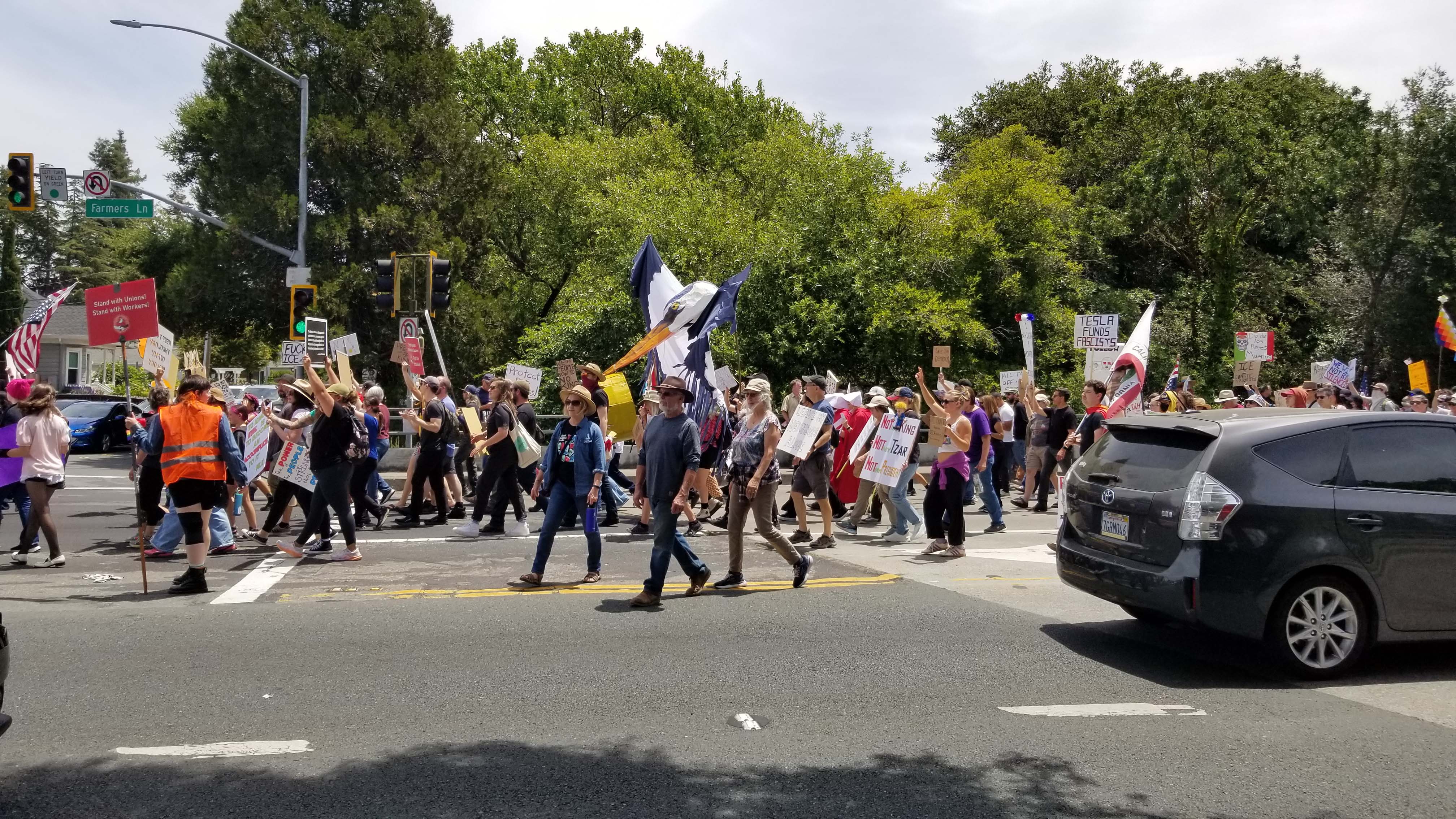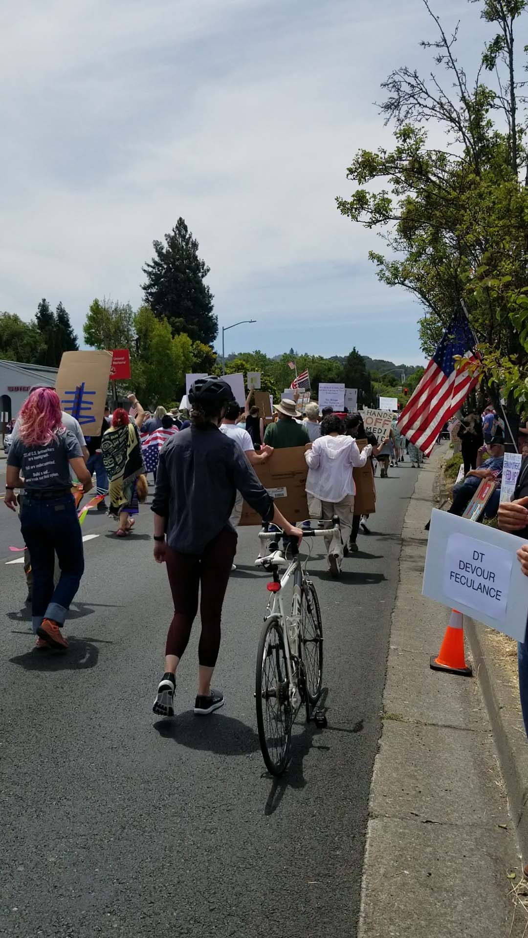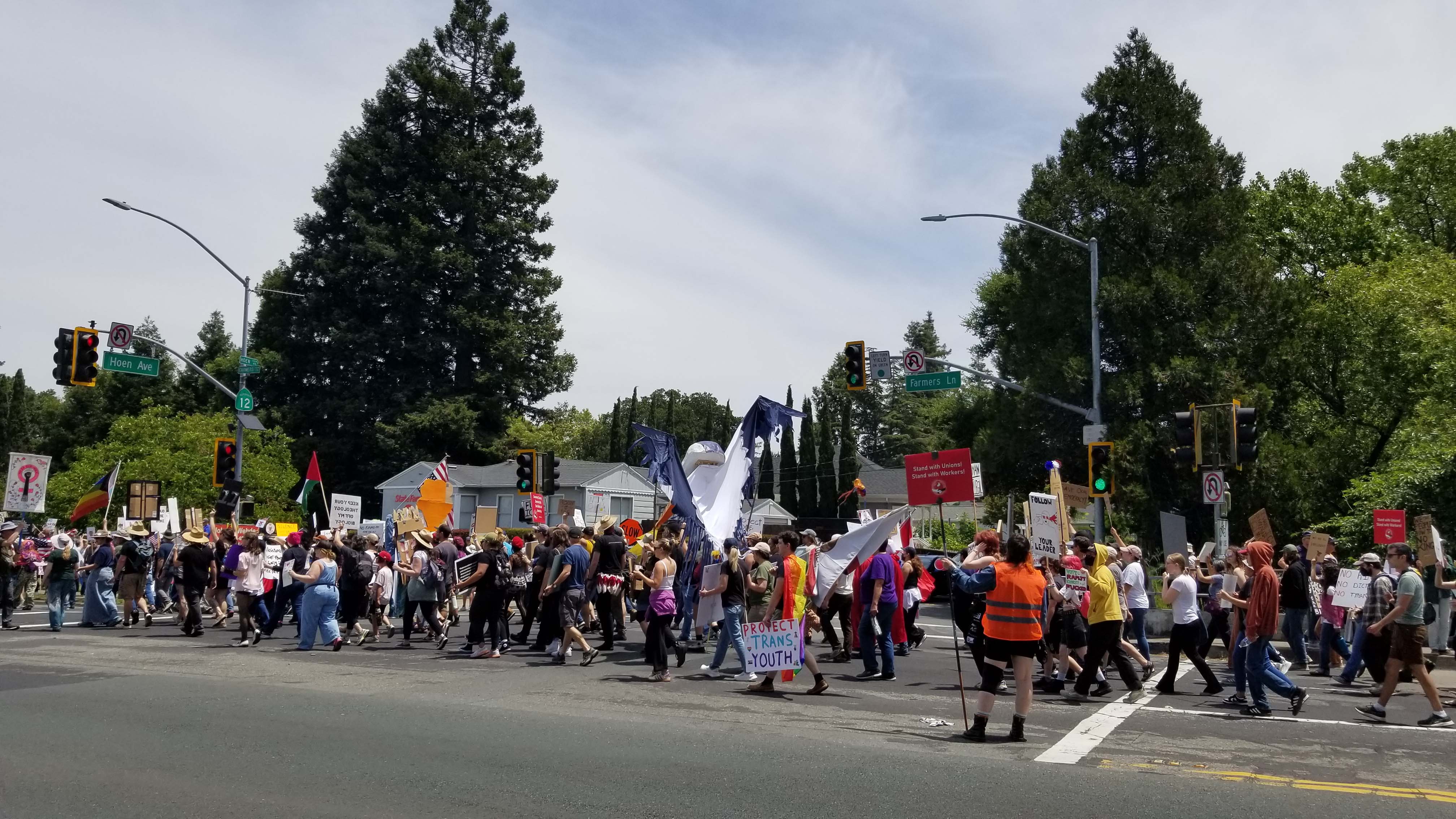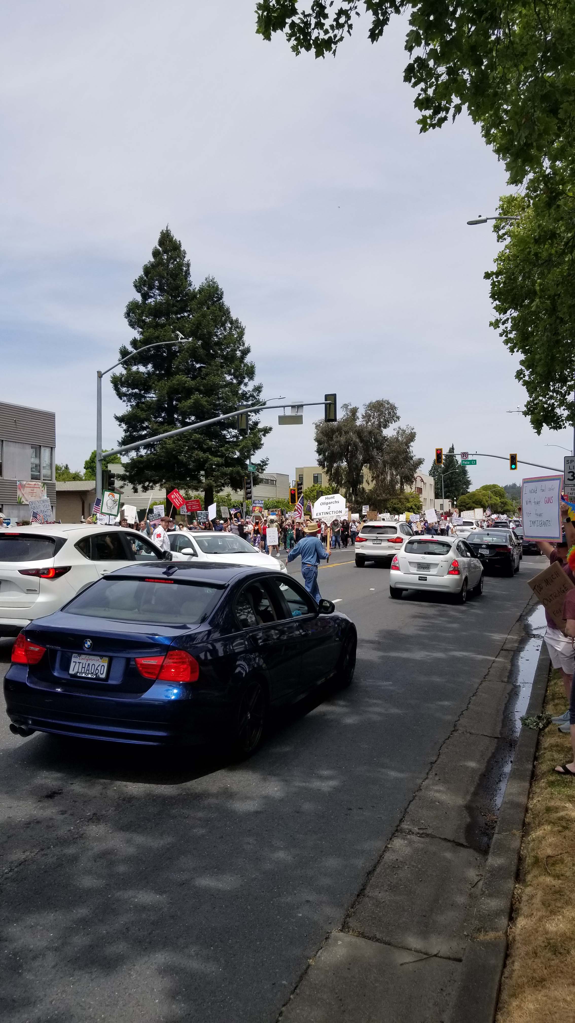 The protestors marched from the north end of Farmers Lane to Hoen Avenue and then turned around and took up the northbound lanes to march back. Crowds began to disperse around 1 PM, with some breaking off to march down Sonoma Avenue towards downtown.